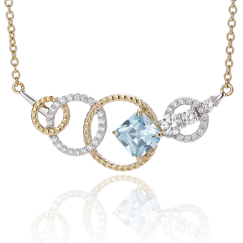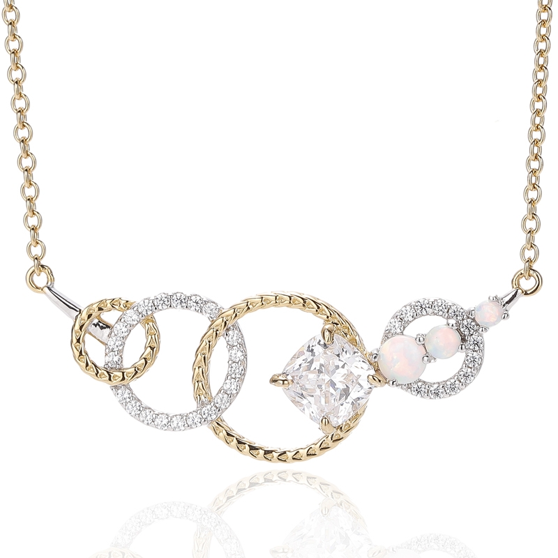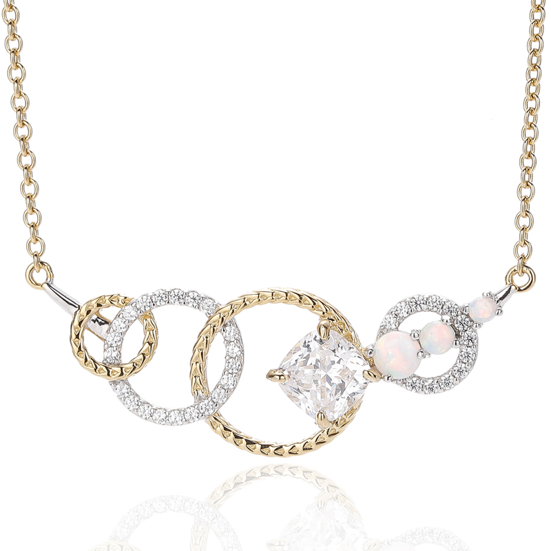 4.66Pendentif en argent 925 avec opale ronde et zircon cubique blanc de forme coussin, plaqué bicolore
