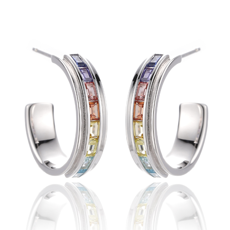 6.75Boucles d'oreilles baguette en zircon cubique arc-en-ciel et argent rhodié