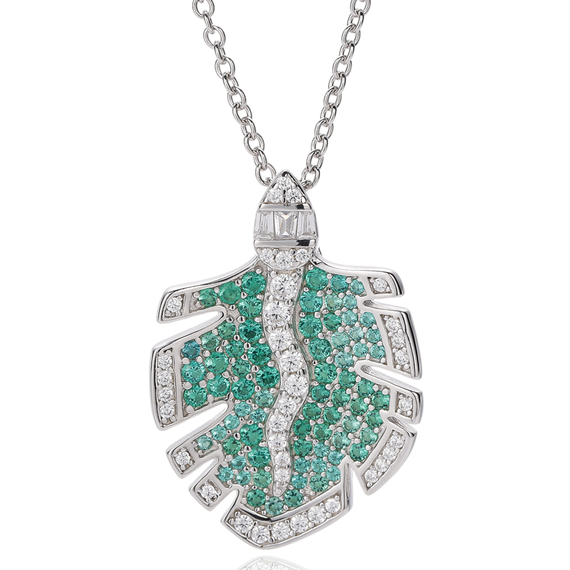 3.71Pendentif rond en nano-zircon vert et blanc conique en argent rhodié avec zircon cubique