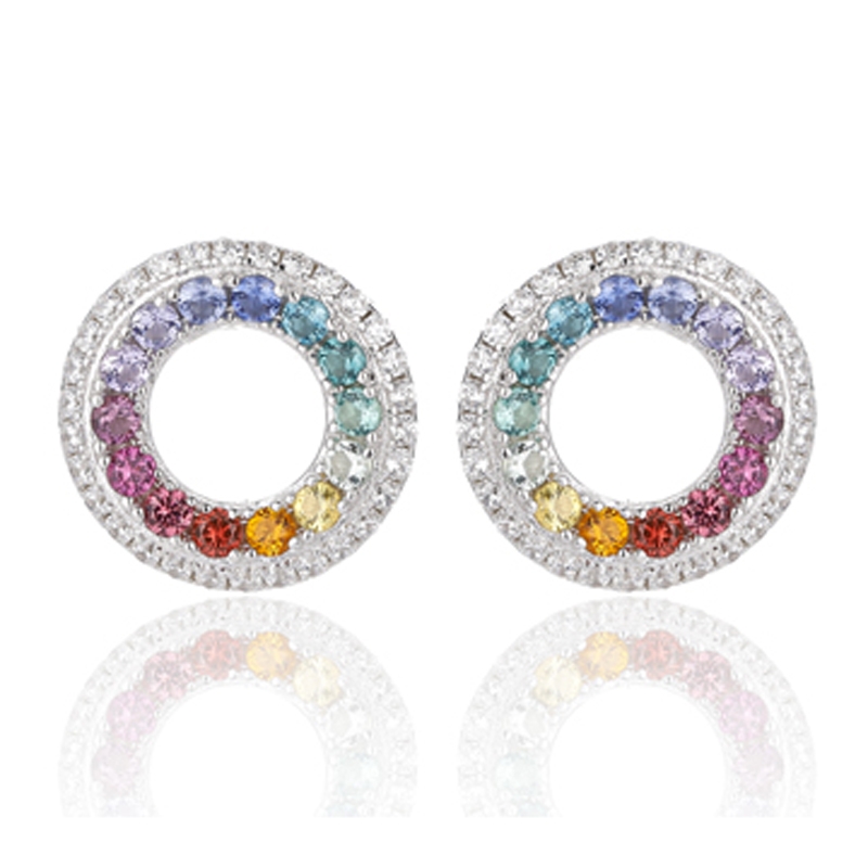 4.54Boucles d'oreilles rondes en argent rhodié avec zircon cubique blanc et arc-en-ciel, ornées de zircon cubique.